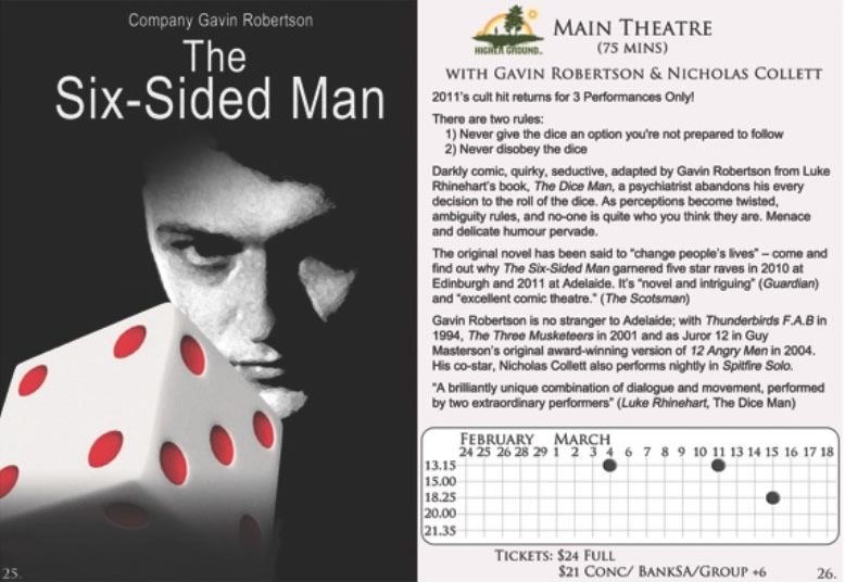 Aelaide 2012 saw our most ambitious season mounting 10 shows in 2 venues accross the city.