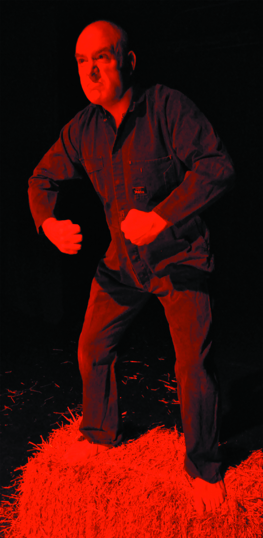 This is indeed an impressive one-man tour de force. Masterson amuses with the interplay between controlling pigs Snowball and Napoleon and then moves the audience as the ascendency of Napoleon becomes more and more sinister; he harangues his subjects from his hay bale vantage with 'death to all traitors', covered in red wash lighting during the execution scene.