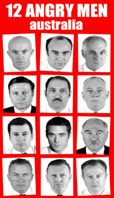 This production, under the direction of Guy Masterson and featuring twelve of Australia's best acting talents including Marcus Graham, Peter Phelps, Richard Piper and Henri Szeps, to name but a few, is a powerful and compelling re-working of the original that sees the text reduced to around an hour and a half of serious drama as twelve jurors (all men) decide the guilt or innocence of a sixteen year old boy accused of murdering his father.